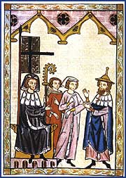 Im christlichen Dietrichspital wirkte um 1220 der jüdische Arzt Süßkind, der vermutlich identisch ist mit dem Minne-sänger Süßkind von Trimberg; auf der Abbildung zu erkennen am spitzen "Judenhut".