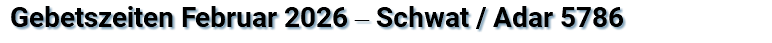 Gebetszeiten Januar 2026 ‒ Tewet / Schwat 5786 Gebetszeiten Februar 2026 ‒ Schwat / Adar 5786