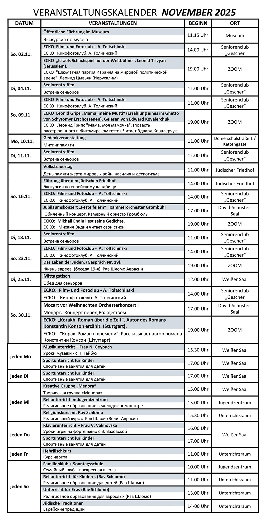 КАЛЕНДАРЬ МЕРОПРИЯТИЙ НОЯБРЬ 2025